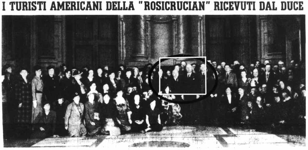 Op 5/3/1937 werd in de Palazzo Venezia te Rome door Mussolini een receptie aangeboden aan de 120 bezoekende Rozekruisers uit Amerika. Het ganse verhaal werd gepubliceerd in het boek Les Rose-Croix du Nouveau Monde door Robert Vanloo - Editions Claire Vigne - 1996. De foto's werden me ter beschikking gesteld door Robert Vanloo.