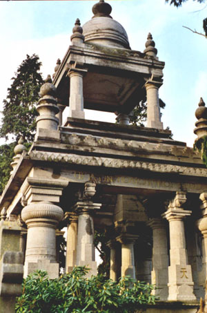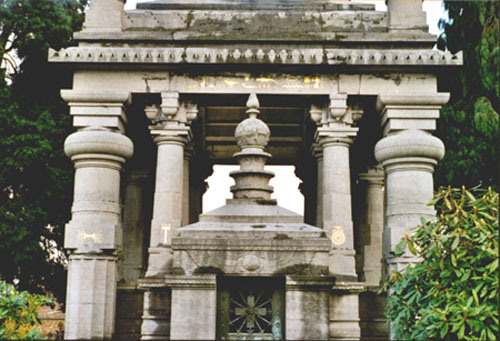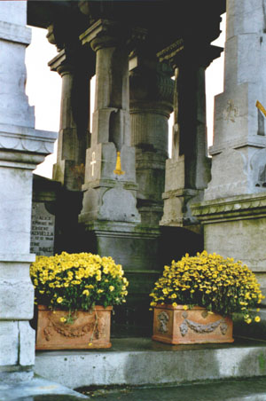 Het grafmonument te Court-Saint-Etienne werd gebouwd van 1885 tot 1887. Het werd gemaakt door de architect Adolphe Samyn ( 1842 - 1903 ). Het basisconcept is een vierkant welke toegang geeft langs de Westelijke zijde door een gang langs twee hagen geflankeerd met twee sfinks. Het geheel werd geïnspireerd op het model van een Indische tempel. Het eerste platform wordt ondersteund door 16 pilaren. De meeste van deze pilaren zijn versierd met talrijke symbolen uit verschillende culturen.